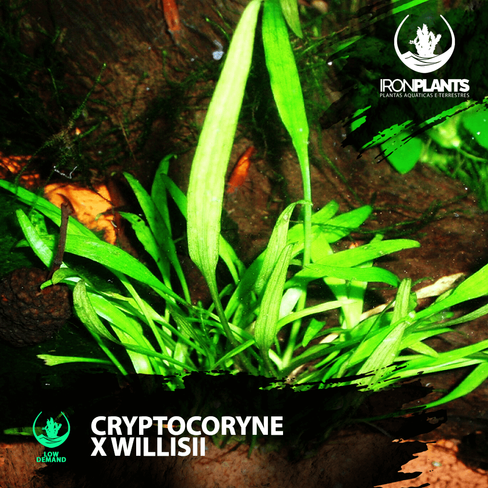 Cryptocoryne Willisii é uma variante menos comum de Cryptocoryne que possui folhas alongadas verdes brilhantes.